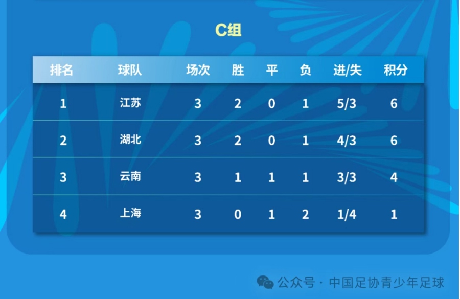 小组赛首轮,由陶金挂帅的上海U18男足得势不得分,最终被云南U18男足0比0逼平,遗憾未能取得开门红。第二轮,上海U18男足以0比2不敌江苏U18队,最后一轮必须赢下湖北U18队才能确保晋级。